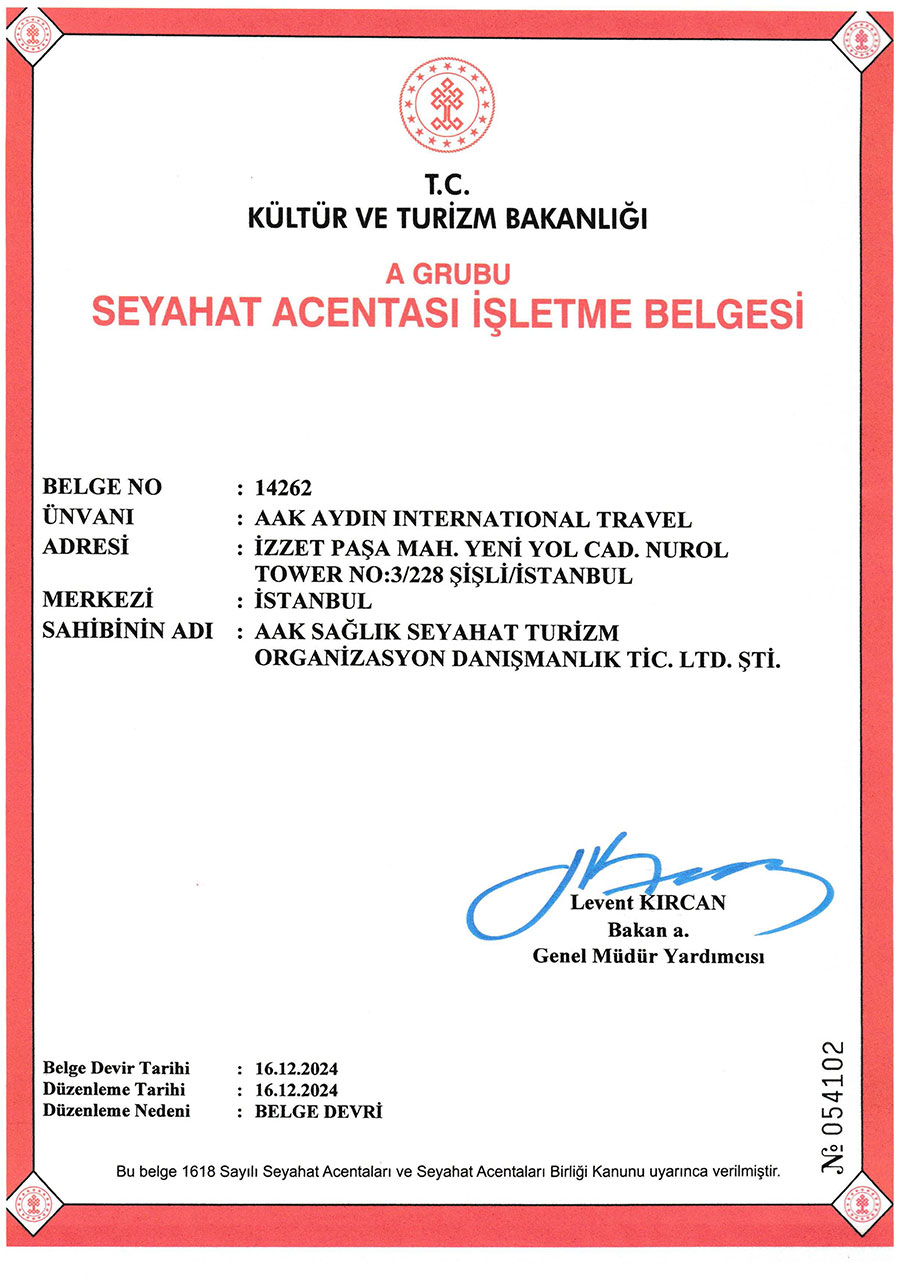 Amacımız, müşterilerimize kaliteli sağlık hizmetleri sunarak sağlık turizmi deneyimlerini geliştirmektir. AAK Aydın International Travel olarak, en iyi sağlık hizmetlerini uygun fiyatlarla sunarak, sektörde önde gelen bir isim olmayı hedeflemekteyiz.